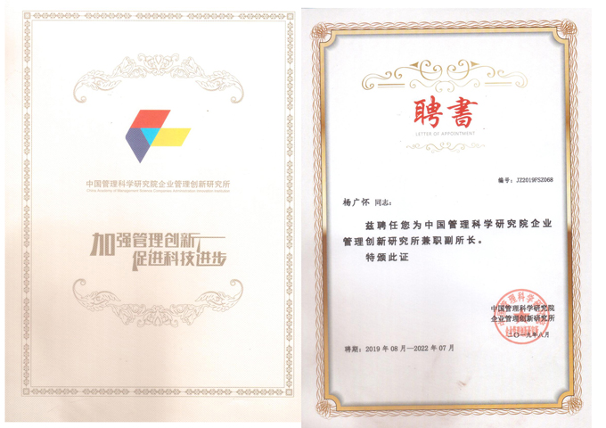 杨广怀董事长受聘为管理科学研究院企业管理创新研究所兼职副所长